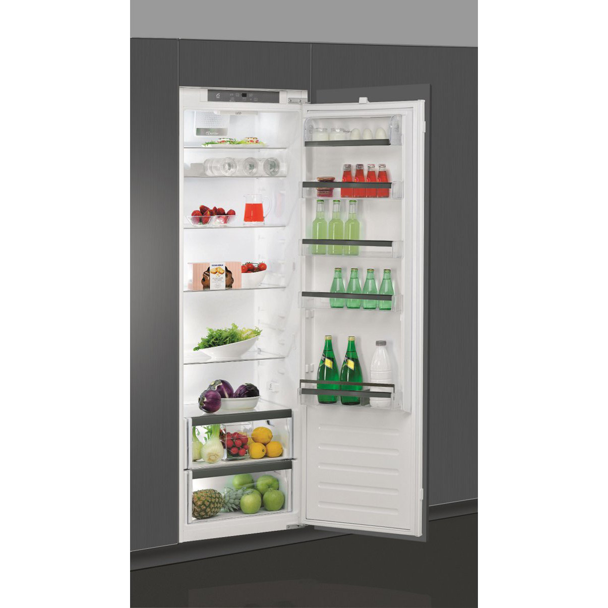 У холодильнику реалізована **технологія Fresh Control**, яка постійно контролює вологість і допомагає підтримувати оптимальну температуру, завдяки чому продукти залишаються свіжими значно довше. Серед інших переваг - **зручний внутрішній дисплей**, що відображає реальну температуру, та індикатор, який сповіщає про нещільно закриті дверцята.