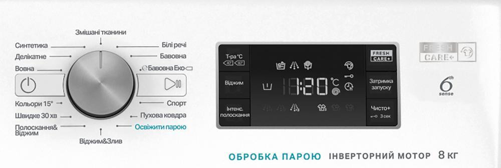 Серед додаткових функцій - функція пари, яка покращує якість прання, та блокування від дітей для вашої безпеки. Система контролю перепадів напруги від 174 до 400 В забезпечує стабільність роботи обладнання у будь-яких умовах. Це не просто механізм для прання, а сучасний пристрій, забезпечений технологією "6 рухів турботи", яка дбає про ваш одяг, зберігаючи його у відмінному стані.