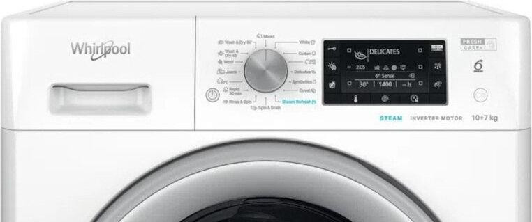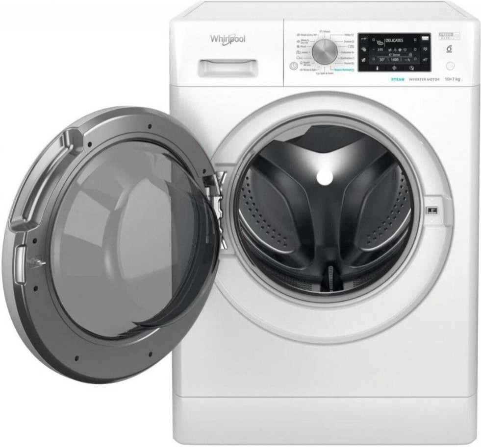 Автоматична прально-сушильна машина Whirlpool FFWDD 1076258 SV – ваш надійний помічник у домашньому господарстві. Вона має фронтальне завантаження з можливістю прання до 10 кг білизни за один цикл, що робить її ідеальною для великої родини. Максимальна швидкість віджиму складає 1600 об/хв, а клас віджиму – А, що забезпечує відмінні результати при сушці.