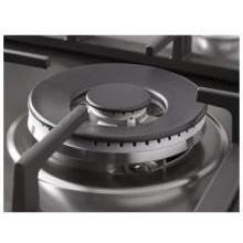 Гасова варильна поверхня пропонує 4 конфорки: одна мала, дві середні та одна велика з потрійною короною, що забезпечує швидке та рівномірне приготування страв. Електрозапалювання та газ-контроль гарантують безпечну експлуатацію, зокрема, автоматично відключають газ у випадку загашення полум'я.