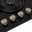 Ця варильна поверхня оснащена газ-контролем та одноручним електропідпалюванням, що забезпечує безпеку під час використання. Також, вона має конфорку з подвійним рядом полум'я, що дозволяє ефективно варити, смажити та готувати на різних рівнях тепла.