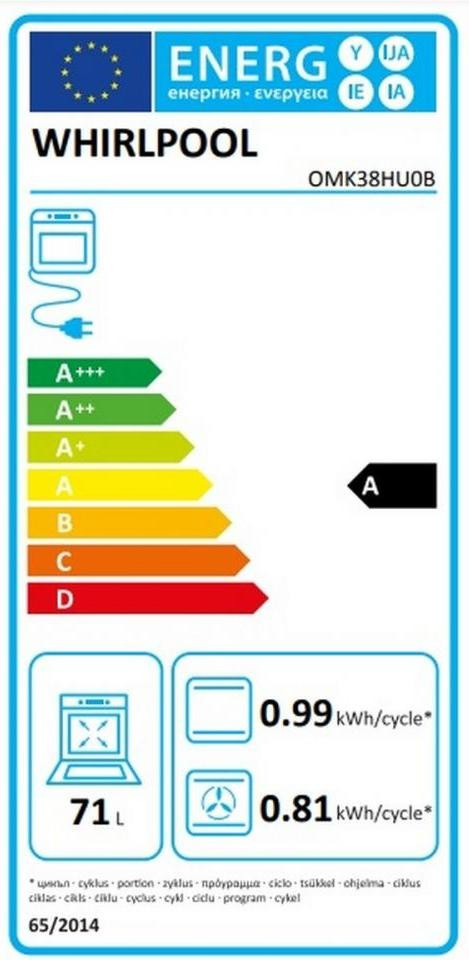 Обираючи Whirlpool OMK38HU0B, ви отримуєте не лише надійний, а й енергоефективний прилад з класом А за енергоспоживанням. Ця духовка – справжній помічник для тих, хто цінує якість та зручність в приготуванні їжі.