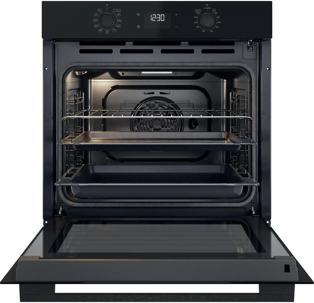 Серед основних характеристик можна виділити електронний таймер, який спрощує процес приготування, а також практичні розміри 59,5х59,5х55,1 см, що дозволяють легко інтегрувати її в будь-яку кухонну шафу. Стильний чорний корпус надає сучасного вигляду, а двостороннє скло дверцят забезпечує додаткову теплоізоляцію.