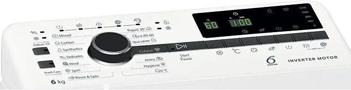 Ця модель оснащена **інверторним двигуном**, який не тільки знижує рівень шуму до 53 дБ під час прання, але й забезпечує високу енергоефективність класу **A+++**. Місткий барабан об'ємом 42 літри вміщує до **6 кг білизни**, що робить її ідеальною для невеликих сімей.