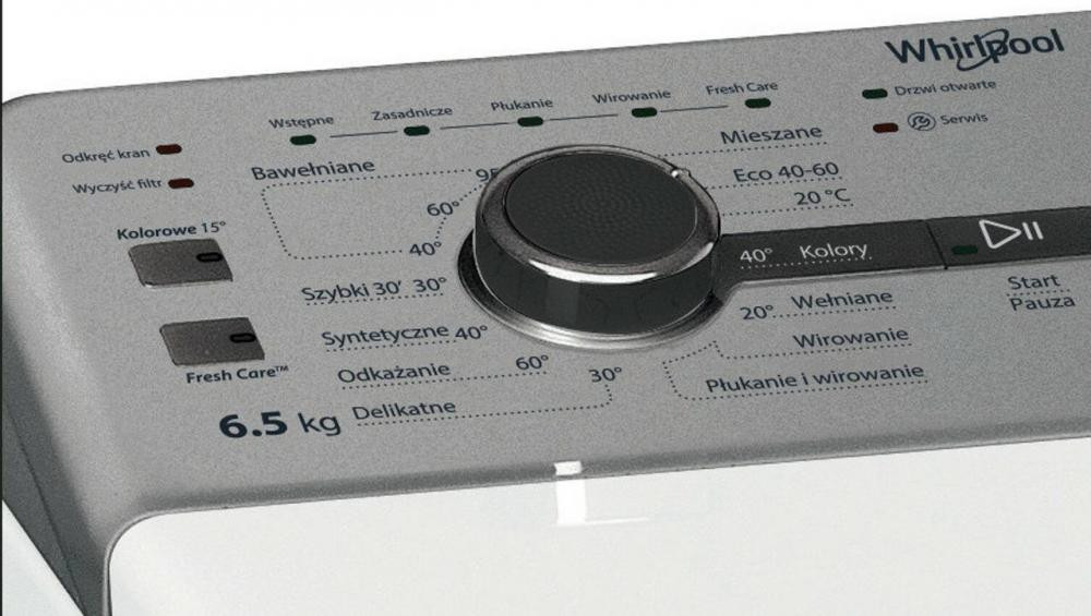 Насолоджуйтесь ідеальною чистотою з пральною машиною Whirlpool TDLRSL 65230SWS. Ця автоматична пральна машина з вертикальним завантаженням розрахована на 6,5 кг білизни, що робить її ідеальною для сімейного використання.