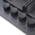 Модель має 4 конфорки та 2 чавунні решітки, які забезпечують надійність та стійкість. Ручки з 9 точками зупинки дозволяють вибрати ідеальне полум'я для різних способів приготування їжі, таких як варіння, смаження та гриль. Крім цього, наявність системи газ-контролю забезпечує безпеку у разі витоку газу або випадкового погашення полум'я.