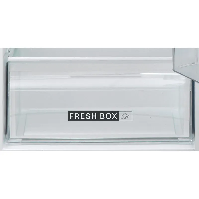 Ця двокамерна холодильна одиниця має скляні полиці з профілями, що забезпечують високу міцність і безпеку, а також дозволяють зручно організувати простір для зберігання продуктів. Практична підкладка для безпечного зберігання пляшок дозволяє легко і зручно розмістити напої без ризику їх падіння чи пошкодження.