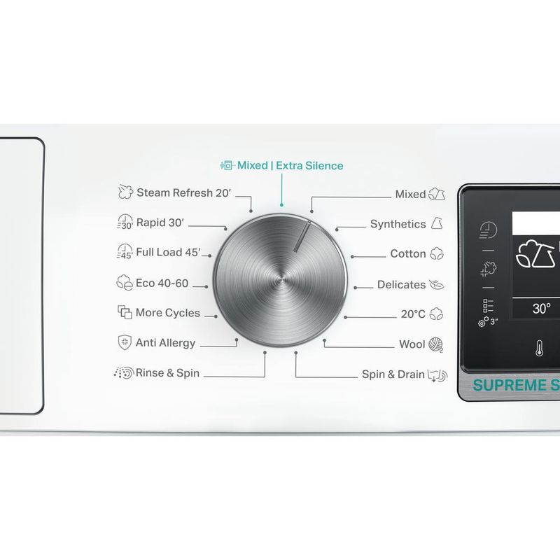 Пральна машина Whirlpool W6X W845WB EE з великим білим баком об’ємом 8,0 кг. Клас енергоефективності B. Швидке та ефективне віджимання зі швидкістю 1400 обертів на хвилину. Унікальна технологія 6-й почуття динамічно адаптує налаштування для кожного прання, щоб забезпечити найкращий догляд за тканинами.