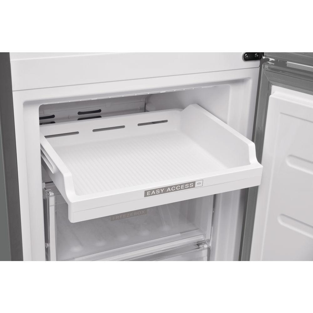 Холодильна камера об'ємом 264 літри містить 4 скляні полиці та два спеціальні відділення для свіжості, одне з яких регулює вологість для овочів, а інше підтримує температуру близько 0°C для риби та м'яса. Нижня морозильна камера об'ємом 104 літри укомплектована практичною полицею EasyAccess та двома висувними ящиками.