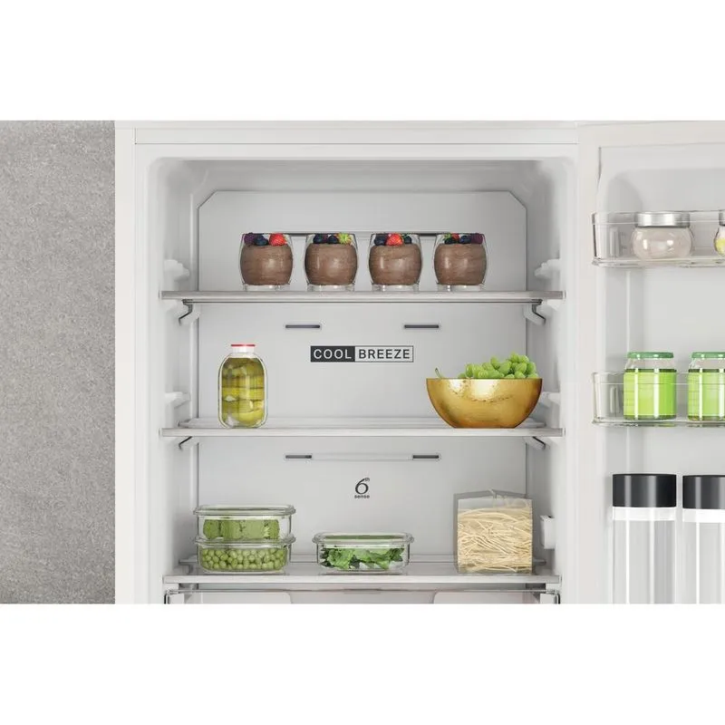 Цей високий холодильник спроектований для задоволення потреб великої родини, дозволяючи зберігати всі необхідні продукти. Шкляні полиці не лише виглядають елегантно, але й забезпечують високу міцність та стійкість. Завдяки технології 6-ий Зір, холодильник автоматично знижує температуру при завантаженні нових продуктів, що дозволяє зменшити споживання енергії.