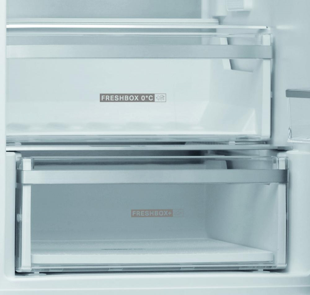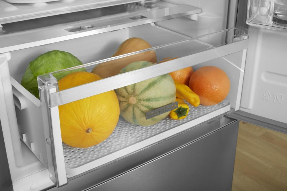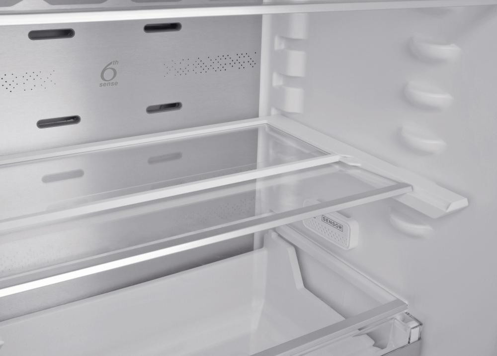 Серед основних переваг варто відзначити **безрозморожувальну систему No Frost**, яка запобігає утворенню льоду і спрощує догляд за приладом. Холодильник має **внутрішнє LED освітлення**, що дозволяє легко знаходити необхідні продукти навіть у темряві. Модель також оснащена **системою FreshSense**, яка постійно контролює і підтримує оптимальну температуру у холодильному і морозильному відділеннях.