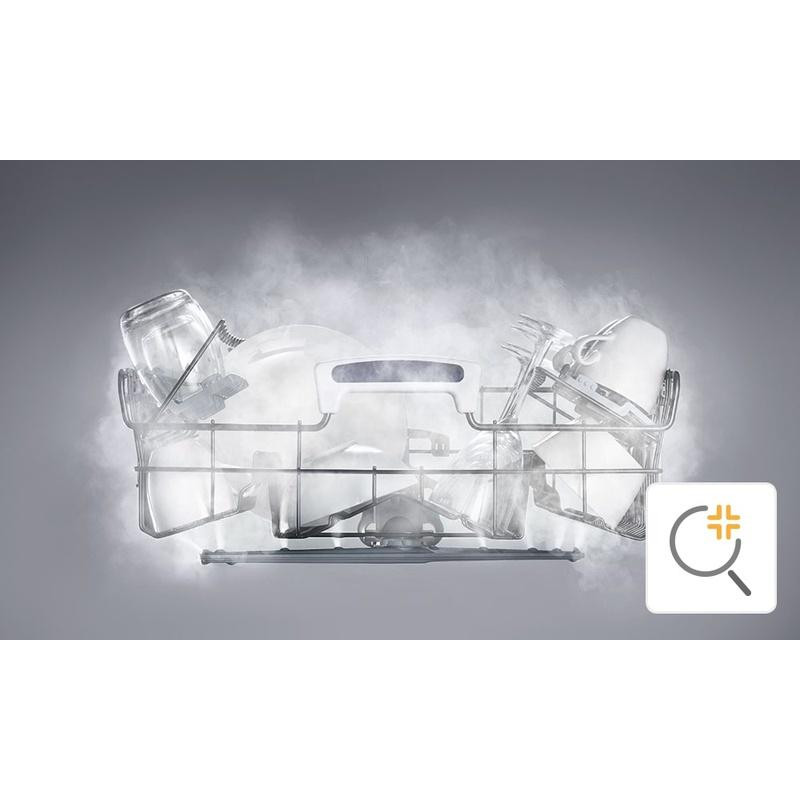 Інверторний мотор працює надійно та тихо, при цьому рівень шуму не перевищує 46 дБ. З технологією 6th Sense посудомийна машина автоматично підбирає оптимальні параметри для максимальної ефективності очищення без необхідності додаткового замочування.