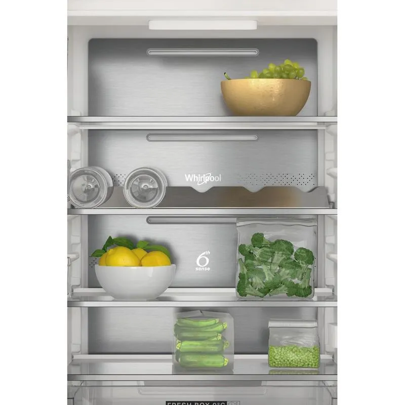 Внутрішній простір холодильника оснащений скляними полицями, які не лише забезпечують елегантний вигляд, але й вирізняються високою міцністю. Вентилятор забезпечує рівномірний розподіл повітря, що гарантує кращу вентиляцію продуктів та підтримує оптимальний мікроклімат всередині. Також, холодильник використовується технологію 6-го чуття, яка автоматично знижує температури всередині після розміщення нових продуктів, допомагаючи знизити енергоспоживання.