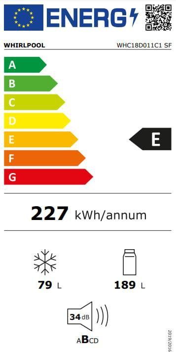 Холодильник Whirlpool WHC18D011C1 SF — це ідеальний вибір для вашого дому, поєднуючи в собі сучасні технології та ефективність. Цей холодильник з морозильною камерою має корисний об'єм 189 літрів у холодильній камері та 79 літрів у морозильній, що забезпечує достатньо місця для зберігання продуктів на будь-який смак.