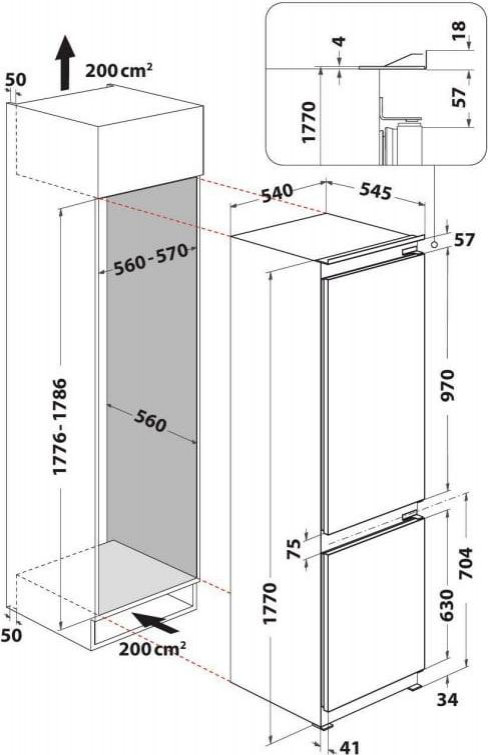 Переваги моделі включають систему розморожування Stop Frost, яка полегшує догляд за морозильною камерою. Завдяки вбудованій конструкції, холодильник легко інтегрується в інтер'єр вашої кухні. Розміри холодильника становлять 54 х 177 х 54.5 см, що дозволяє зекономити простір без втрати функціональності.