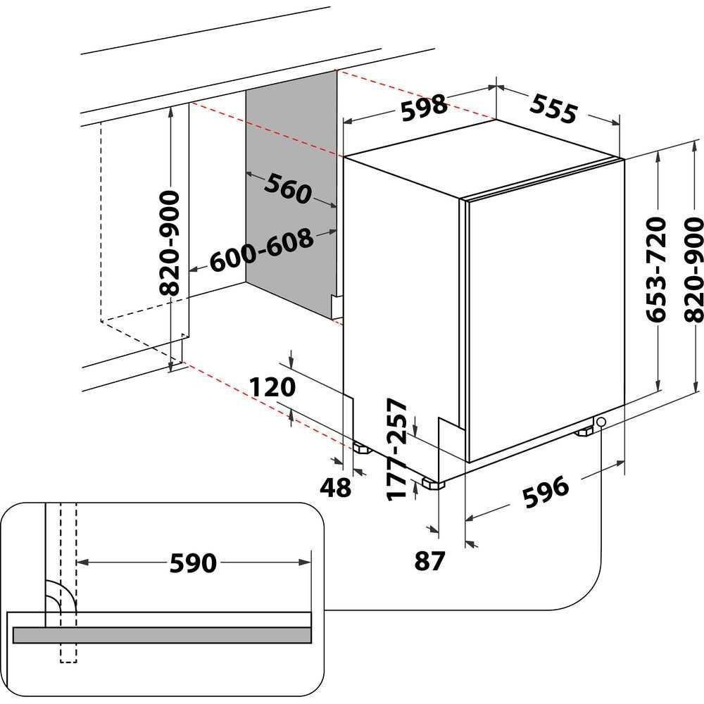 Вона є повновбудованою моделлю, яка легко впишеться в будь-який інтер'єр, адже її розміри становлять 82x59,8x55,5 см. З її допомогою ви зможете мити до 14 комплектів посуду за один раз, що робить її надзвичайно практичною для великих родин та святкових прийомів.
