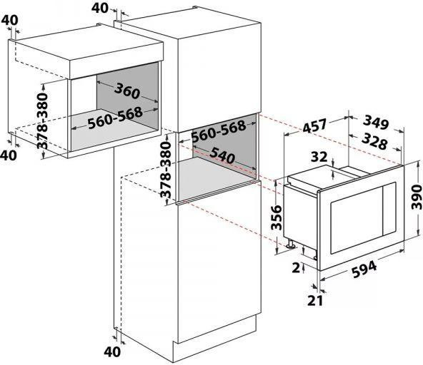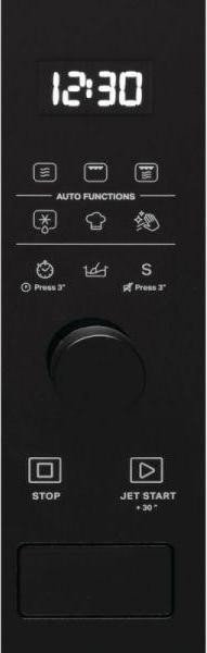 Управління мікрохвильовою піччю є сенсорним, що робить використання ще більш зручним. Піч також має систему автоочищення, завдяки якій очищення забруднень стає легким завданням. Компактні розміри (59,4 x 34,9 x 39 см) дозволяють вбудувати цей пристрій в кухонні меблі. Спосіб відкриття дверцят — кнопка, що забезпечує додаткову зручність.