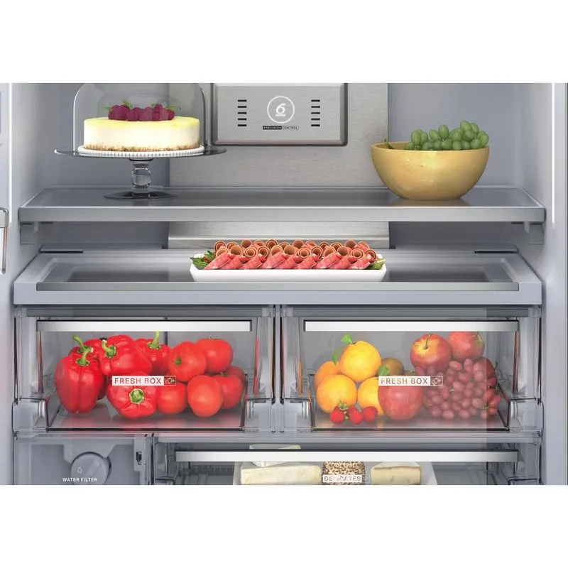 Холодильник оснащений великими відділеннями для зберігання продуктів, що зробить процес організації їжі максимально зручним. Дзеркальна поверхня та сучасний вигляд гармонує з сучасними тенденціями у дизайні інтер'єру. Користувачі зможуть насолоджуватися функціональністю холодильника та його естетичним виглядом водночас.